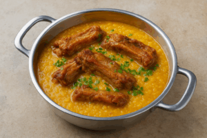 Esse clássico do interior é a cara do inverno mineiro. A canjiquinha (quirera de milho) é cozida lentamente com costelinha suína defumada, formando um caldo grosso e irresistível.