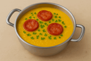 Mais um caldo típico que não pode faltar nas noites frias. A mandioca traz cremosidade e sustância, enquanto a linguiça dá aquele toque defumado. Pode ser servido com cheiro-verde, pimenta e torradas.